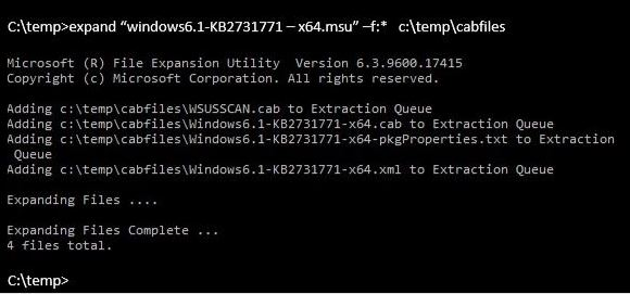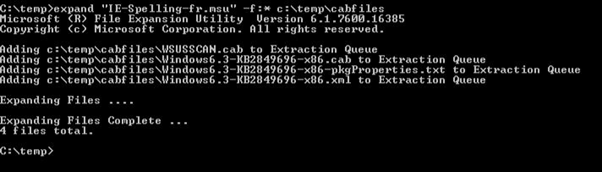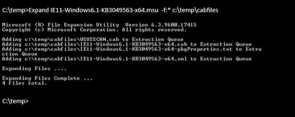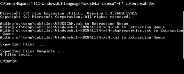 C:\temp>Expand "IE11-windows6.1-LanguagePack-x64.af-za.msu" -f:* c:\te mp\cabfiles