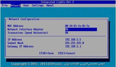 حالا از منوی قبل خارج بشین، تنظیمات رو Save کنین و ILO رو Restart کنید. سپس برای اطمینان سرور رو Restart کنین. حال میتوانید تنظیمات خود را امتحان کنید. (یک پنجره IE باز کنید و IP مربوط به ILO رو وارد کنید با HTTPS://IP) اگر نمیخواهید از Static IP استفاده کنید، میتوانید Lease های DHCP رو چک کنید و ببینید که ILO چه IP گرفته است (بر اساس اسمی که روی Tag نوشته شده). همینطور تمامی تنظیماتی که از طریق صفحه POST انجام دادین رو میتوانید در Web Interface هم انجام بدهید. لازم به ذکر هست که سرور های HP دارای قابلیتی هستند به اسم HPONCFG که با استفاده از اون، از طریق Command هم میتونین با ILO ارتباط برقرار کنین.